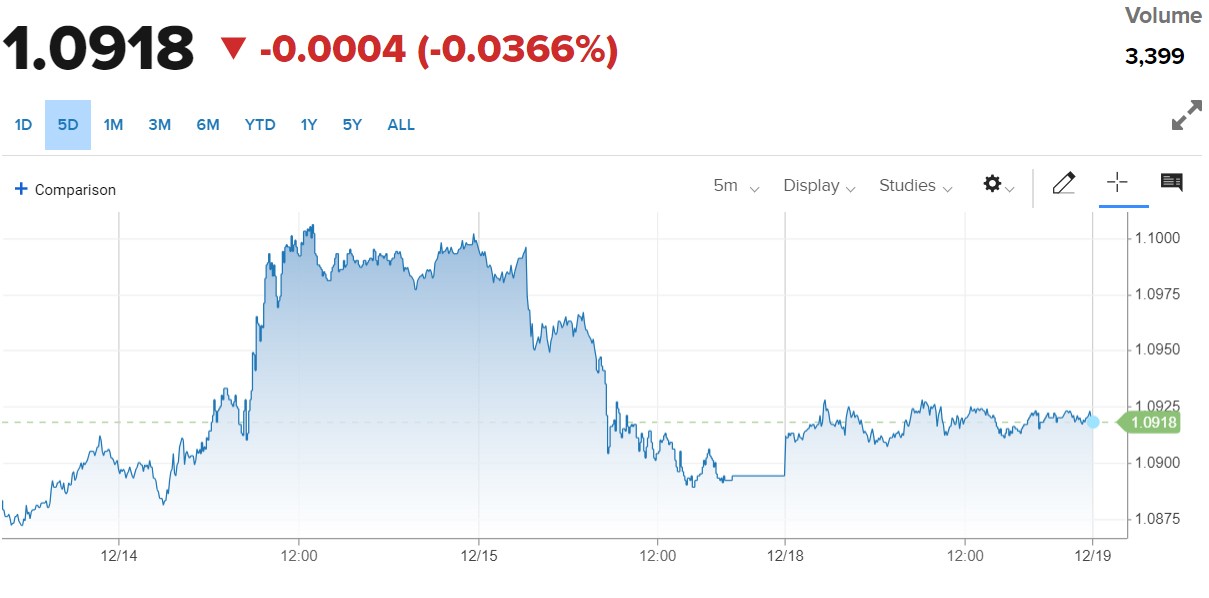 | Diễn biến tỷ giá EUR/USD trên thị trường thế giới (Nguồn: CNBC) |
