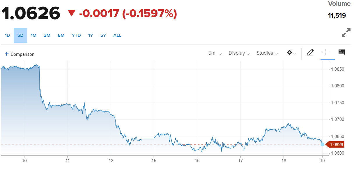 | Diễn biến tỷ giá EUR/USD trên thị trường thế giới (Nguồn: CNBC) |