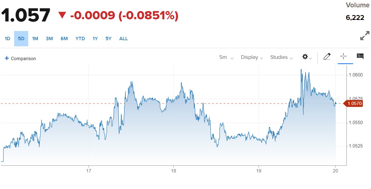 Diễn biến tỷ giá EUR/USD trên thị trường thế giới (Nguồn: CNBC)