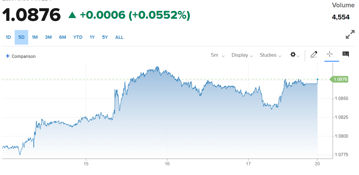 | Diễn biến tỷ giá EUR/USD trên thị trường thế giới. Nguồn: CNBC |
