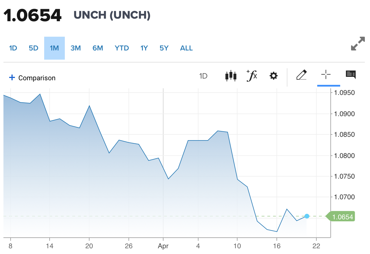 | Diễn biến tỷ giá EUR/USD trên thị trường thế giới (Nguồn: CNBC) |