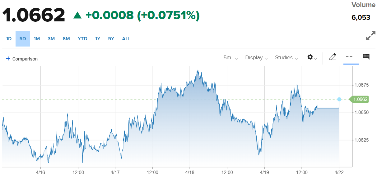 | Diễn biến tỷ giá EUR/USD trên thị trường thế giới (Nguồn: CNBC) |