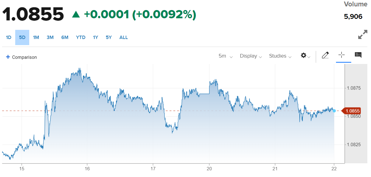 | Diễn biến tỷ giá EUR/USD trên thị trường thế giới. Nguồn: CNBC |