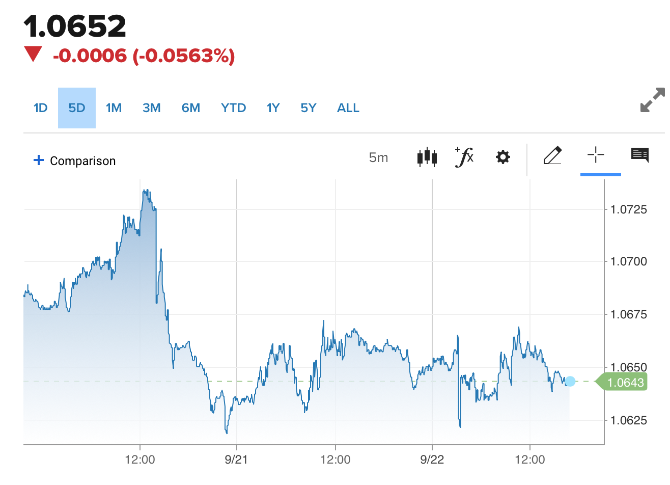 | Diễn biến tỷ giá EUR/USD trên thị trường thế giới (Nguồn: CNBC) |