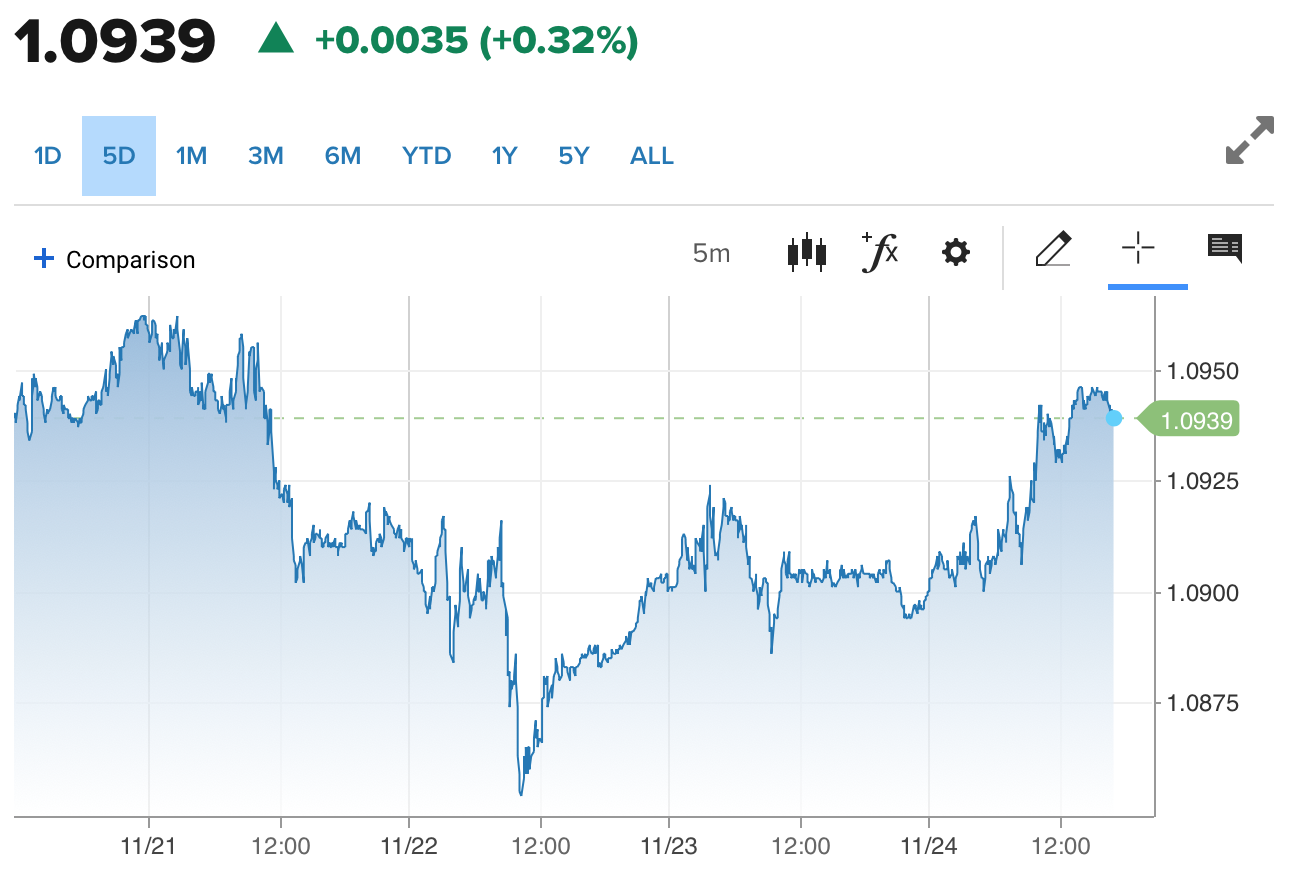 Tỷ giá Euro hôm nay ngày 25/11/2023 trên thị trường thế giới