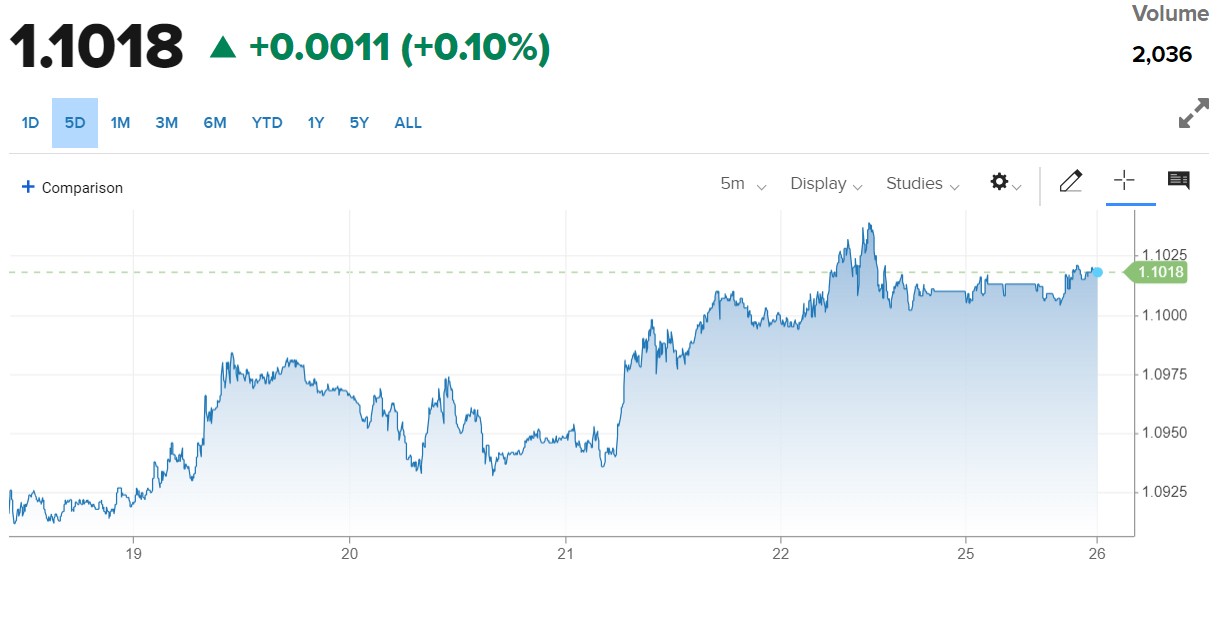 | Tỷ giáDiễn biến tỷ giá EUR/USD trên thị trường thế giới (Nguồn: CNBC) |