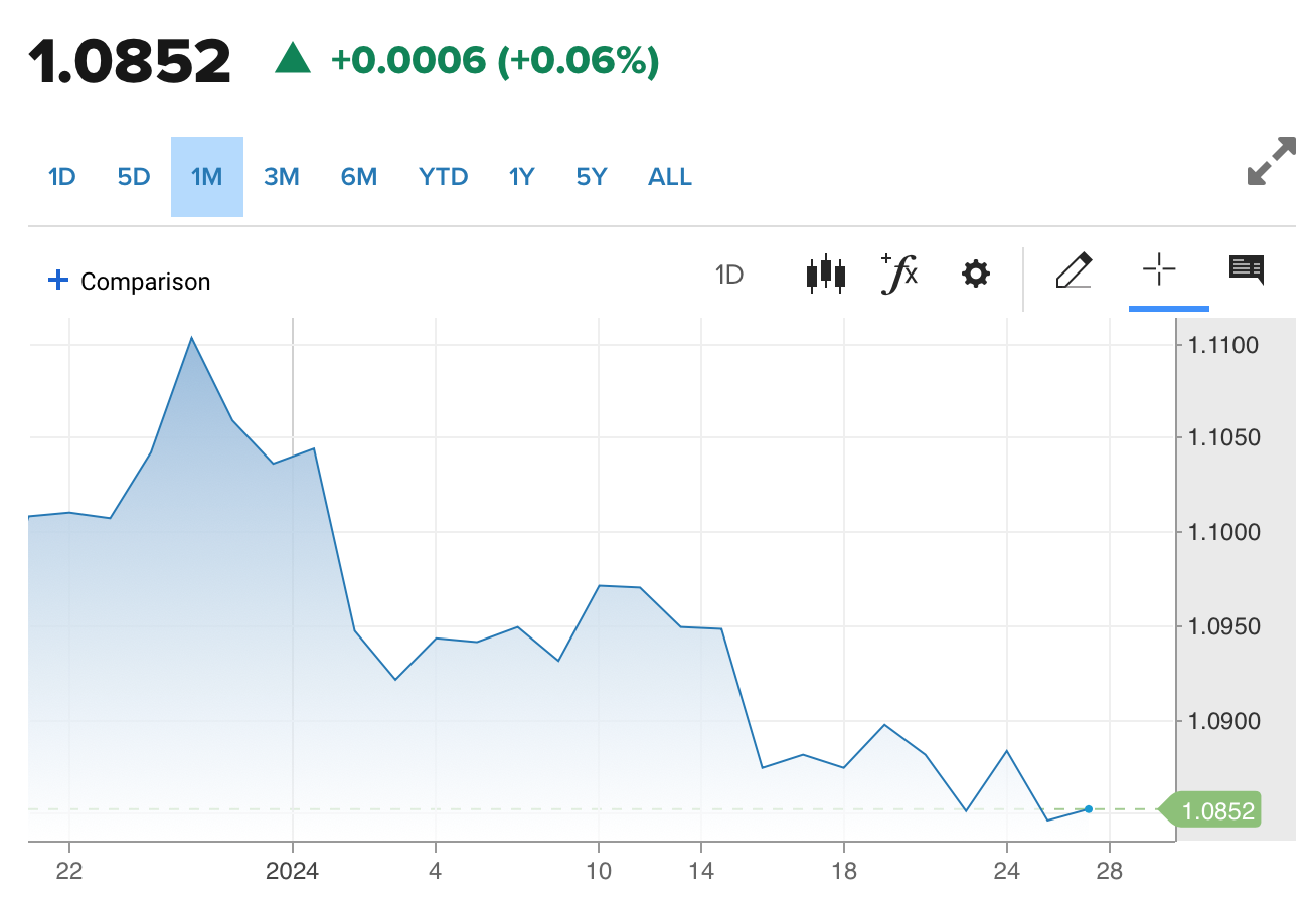 Tỷ giá Euro hôm nay ngày 27/1/2023 trên thị trường thế giới
