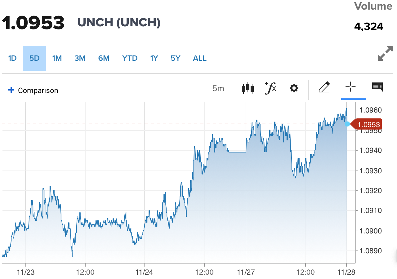 | Diễn biến tỷ giá EUR/USD trên thị trường thế giới (Nguồn: CNBC) |