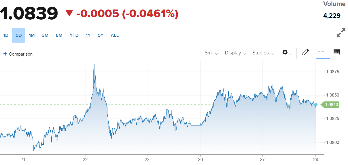 | Diễn biến tỷ giá EUR/USD trên thị trường thế giới (Nguồn: CNBC) |