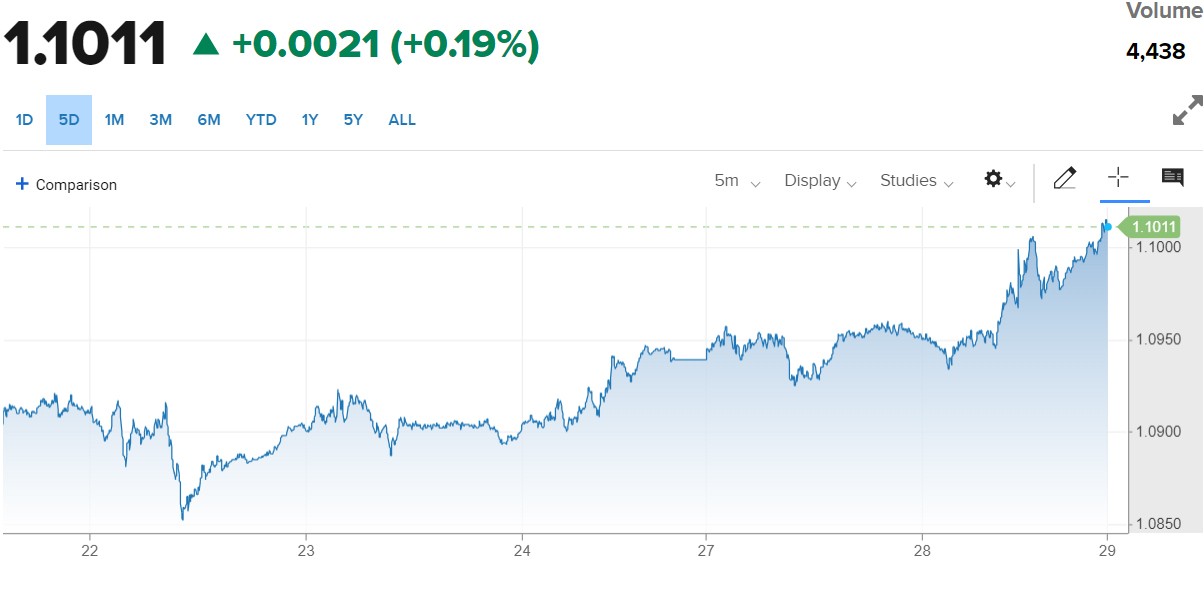 | Diễn biến tỷ giá EUR/USD trên thị trường thế giới (Nguồn: CNBC) |