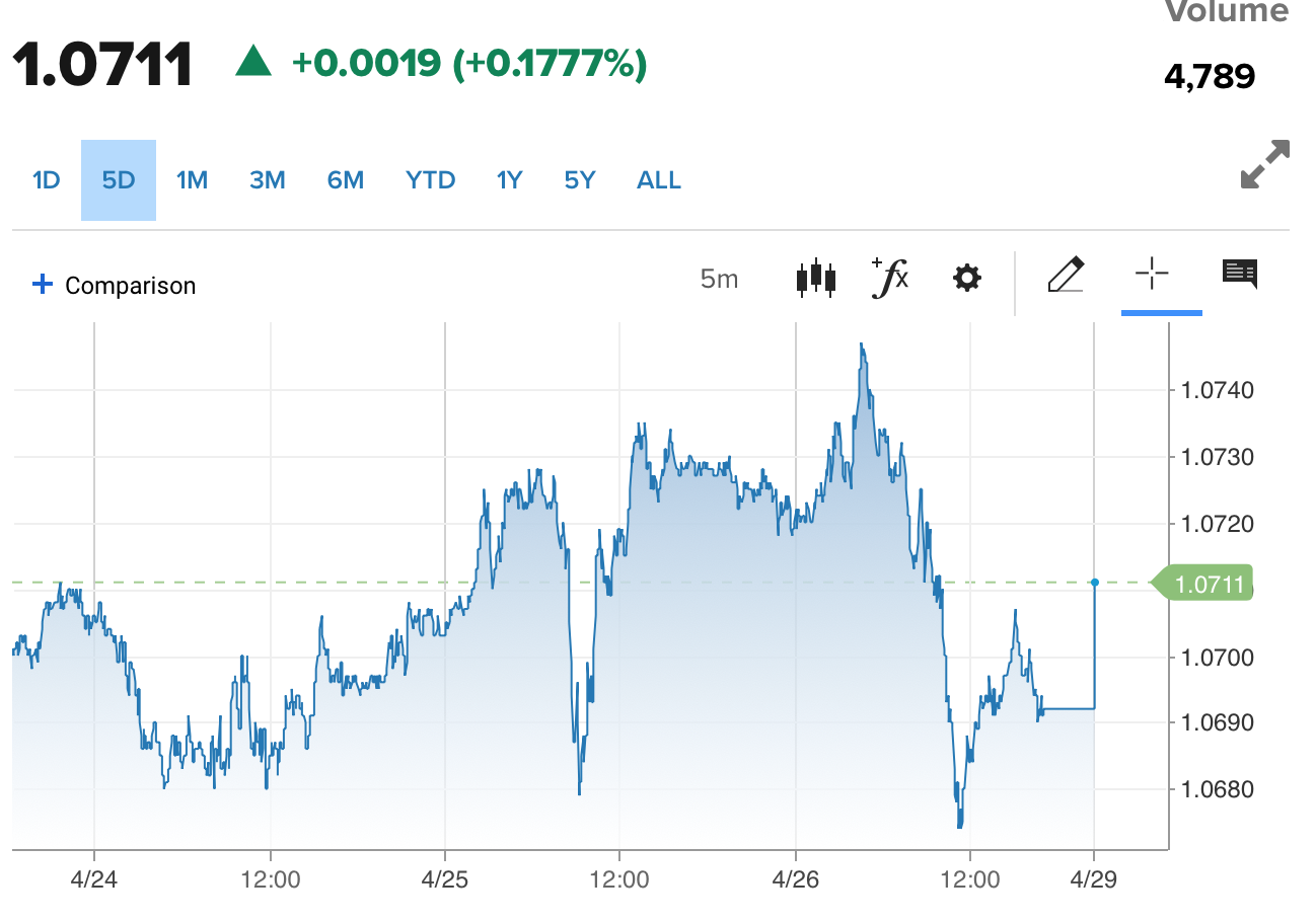 | Diễn biến tỷ giá EUR/USD trên thị trường thế giới. Nguồn: CNBC |