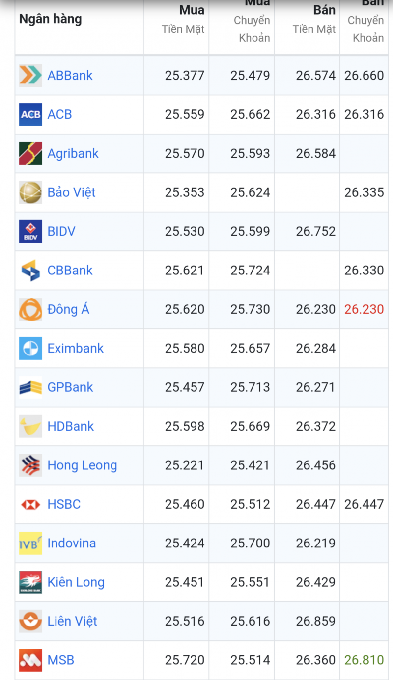 Hôm nay khảo sát của báo Công Thương cho thấy, Ngân hàng Sài Gòn mua Euro giá cao nhất là 27.230,00VND/EUR. Bán Euro thấp nhất là Ngân hàng Đông Á với 26.230,00 VND/EUR.