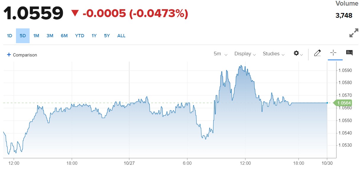 Diễn biến tỷ giá Euro trên thị trường thế giới cho thấy, chỉ số EUR/USD hiện đang ở mức 1.0559, giảm 0.0005 điểm, tương đương 0.473% so phiên trước.