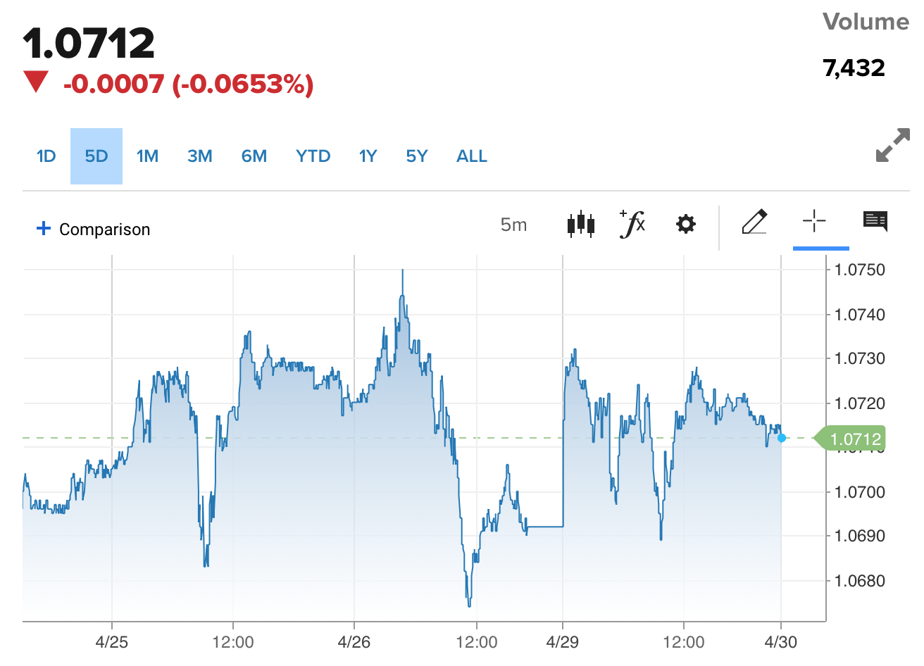 | Diễn biến tỷ giá EUR/USD trên thị trường thế giới. Nguồn: CNBC |