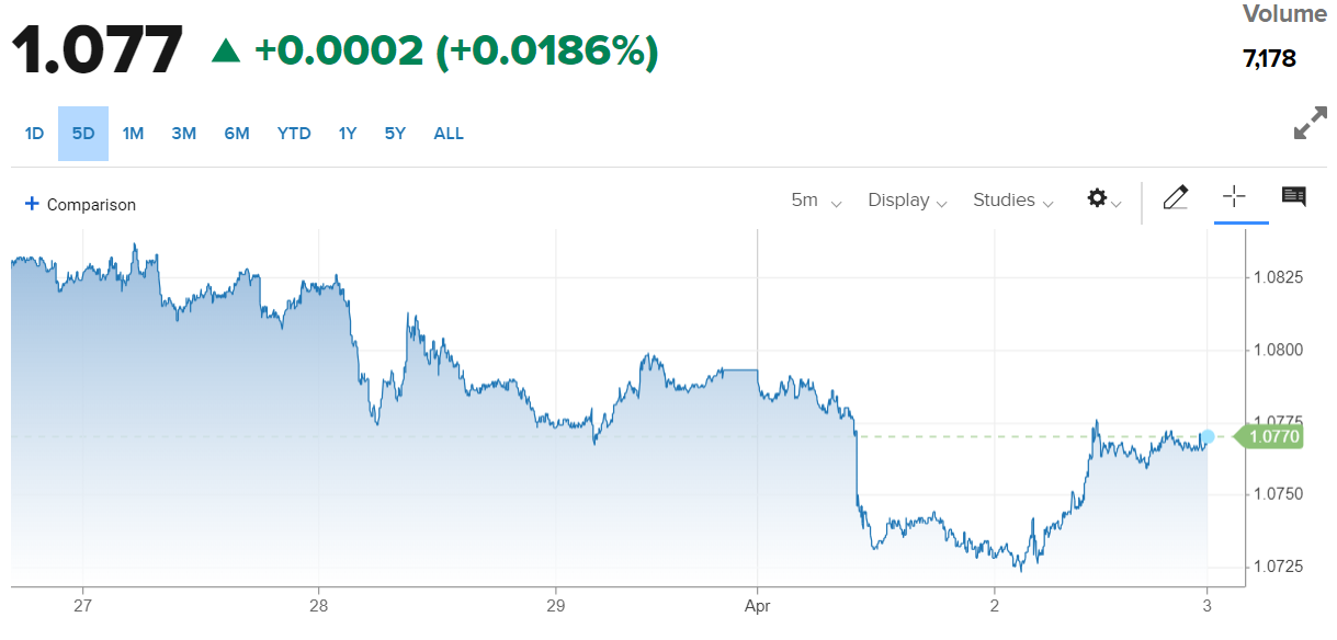 | Diễn biến tỷ giá EUR/USD trên thị trường thế giới (Nguồn: CNBC) |