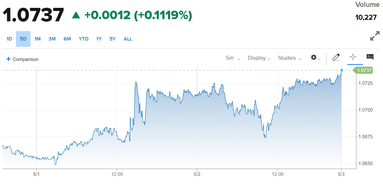 | Diễn biến tỷ giá EUR/USD trên thị trường thế giới. Nguồn: CNBC |