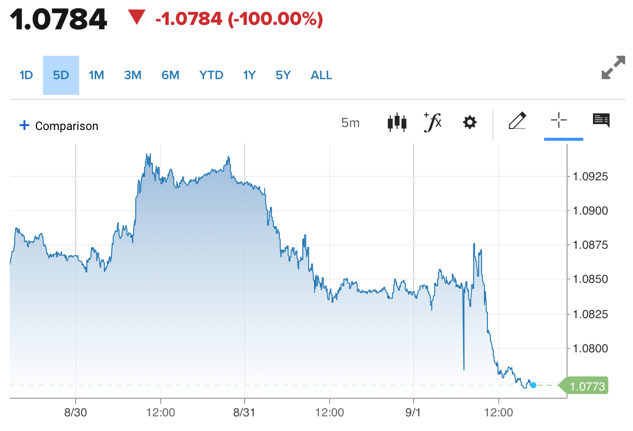 Diễn biến tỷ giá EUR/USD trên thị trường thế giới (Nguồn: CNBC)