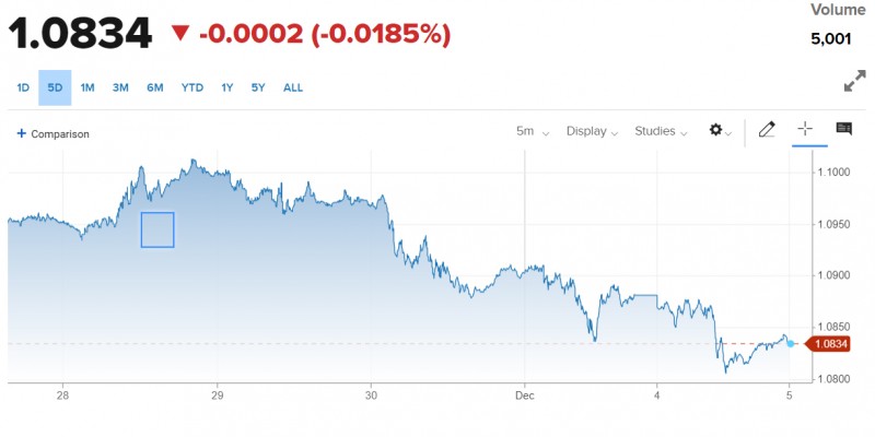 | Diễn biến tỷ giá EUR/USD trên thị trường thế giới (Nguồn: CNBC) |