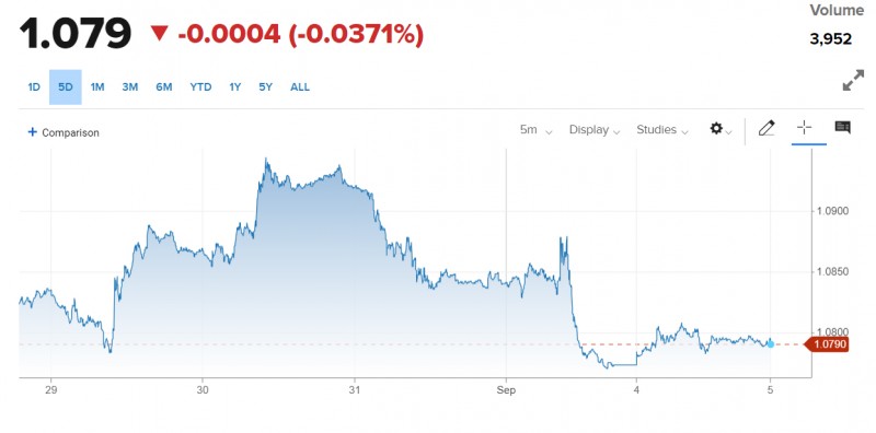 | Diễn biến tỷ giá EUR/USD trên thị trường thế giới (Nguồn: CNBC) |