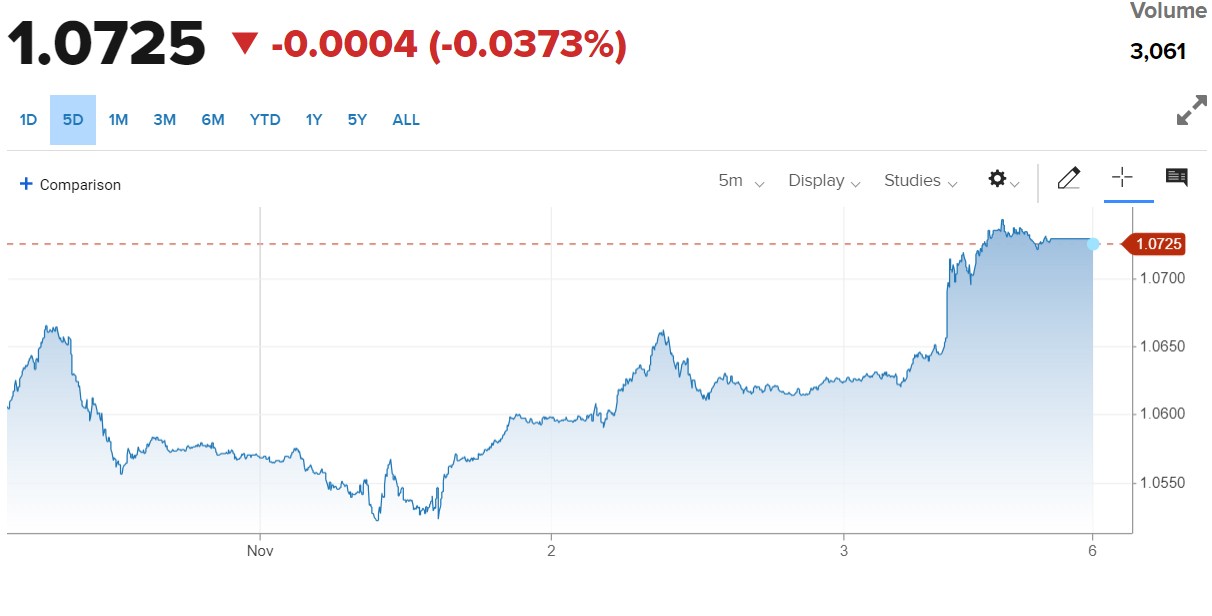 Diễn biến tỷ giá EUR/USD trên thị trường thế giới (Nguồn: CNBC)