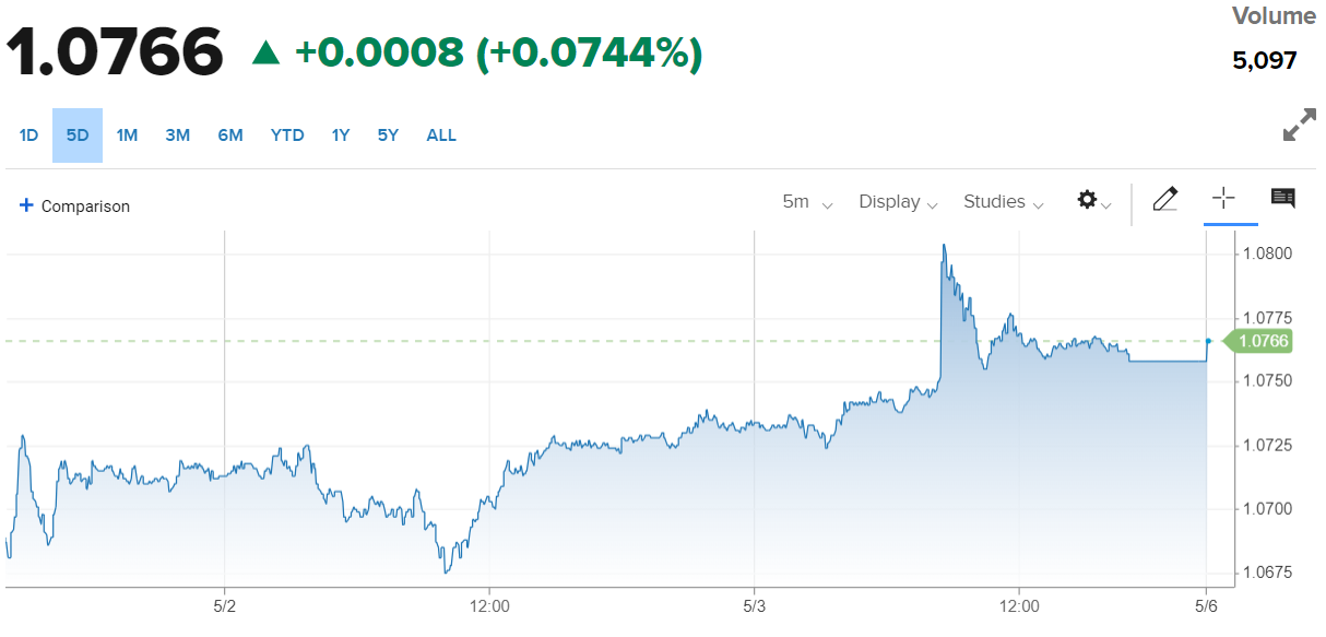 | Diễn biến tỷ giá EUR/USD trên thị trường thế giới. Nguồn: CNBC |