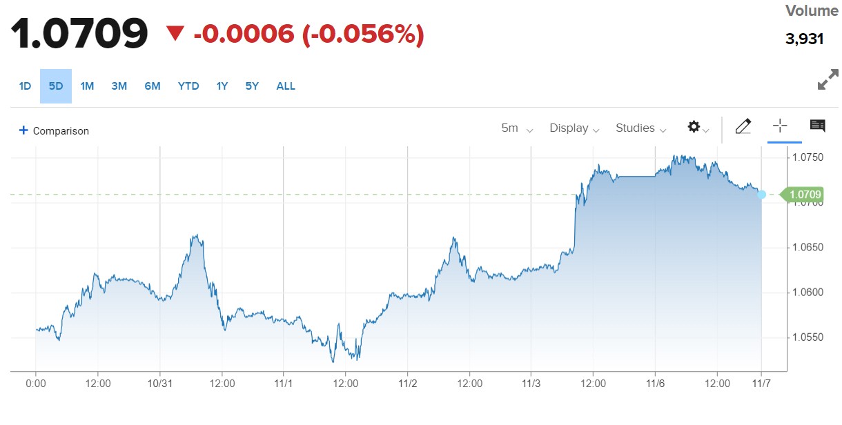 | Diễn biến tỷ giá EUR/USD trên thị trường thế giới (Nguồn: CNBC) |