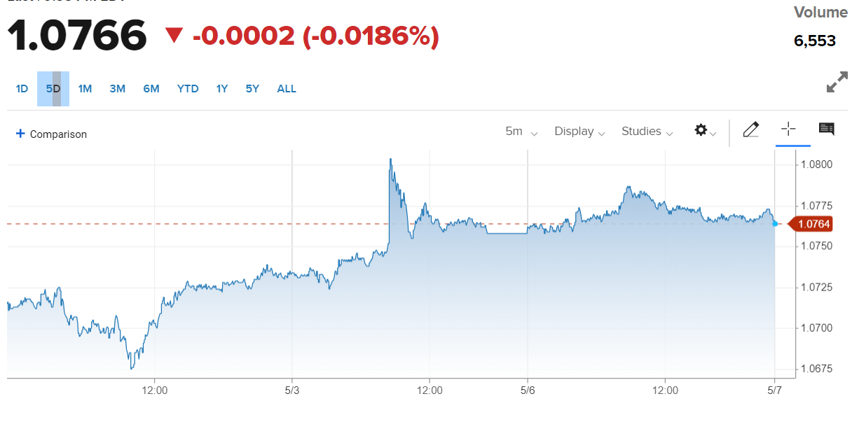 | Diễn biến tỷ giá EUR/USD trên thị trường thế giới. Nguồn: CNBC |
