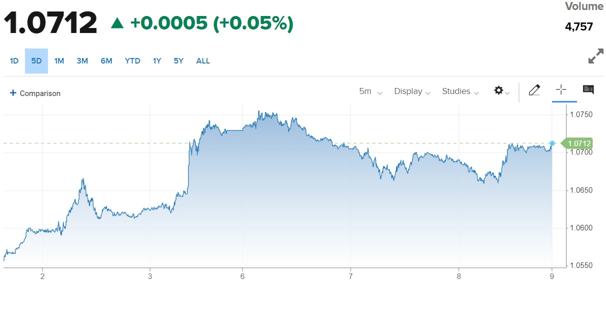 | Diễn biến tỷ giá EUR/USD trên thị trường thế giới (Nguồn: CNBC) |