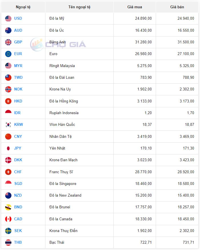 Với 8 ngoại tệ còn lại, khách hàng có thể giao dịch bằng hình thức chuyển khoản: Krone Đan Mạch (DKK), rupee Ấn Độ (INR), Dinar Kuwaiti (KWD), ringgit Malaysia (MYR), Krone Na Uy (NOK), Rúp Nga (RUB), Rian Ả-Rập-Xê-Út (SAR) và Krona Thụy Điển (SEK).
