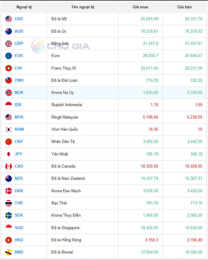 Với 8 ngoại tệ còn lại, khách hàng có thể giao dịch bằng hình thức chuyển khoản: Krone Đan Mạch (DKK), rupee Ấn Độ (INR), Dinar Kuwaiti (KWD), ringgit Malaysia (MYR), Krone Na Uy (NOK), Rúp Nga (RUB), Rian Ả-Rập-Xê-Út (SAR) và Krona Thụy Điển (SEK).