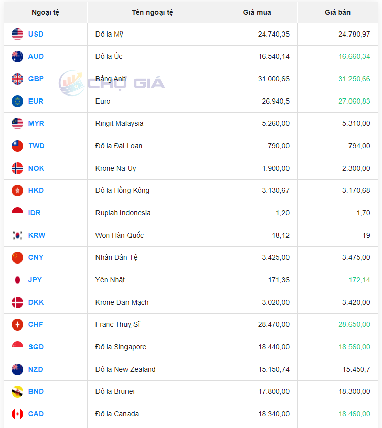 Mua tiền mặt | Mua chuyển khoản | Bán ra | |