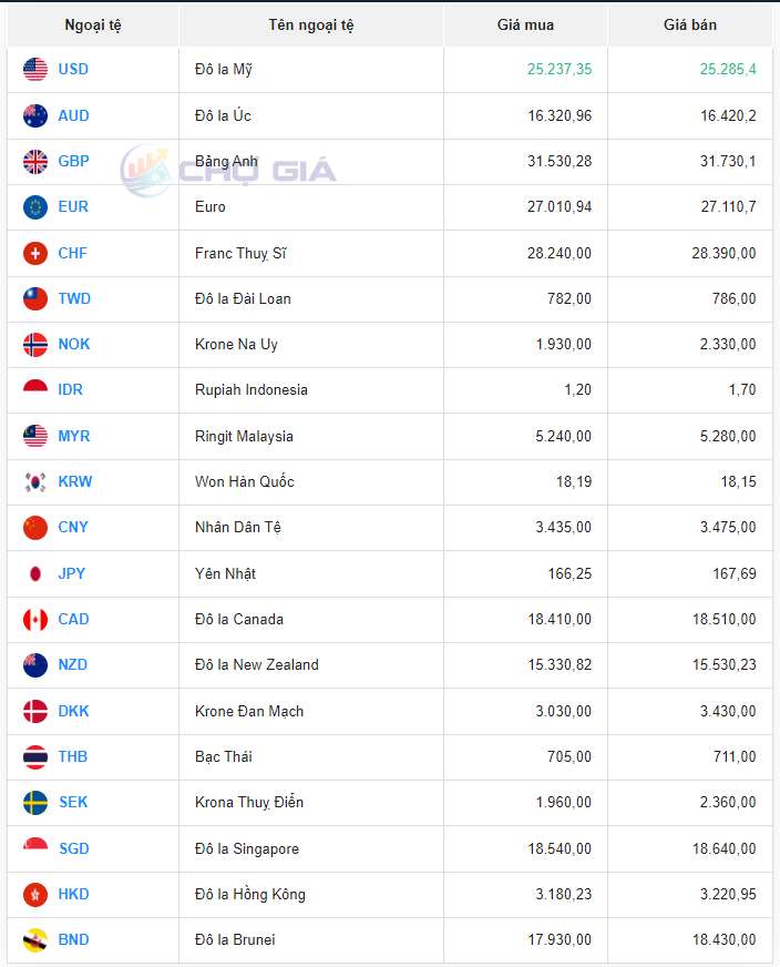 | Bảng giá ngoại tệ tại chợ giá lúc 8 giờ 00 phút hôm nay 25/2/2024 |