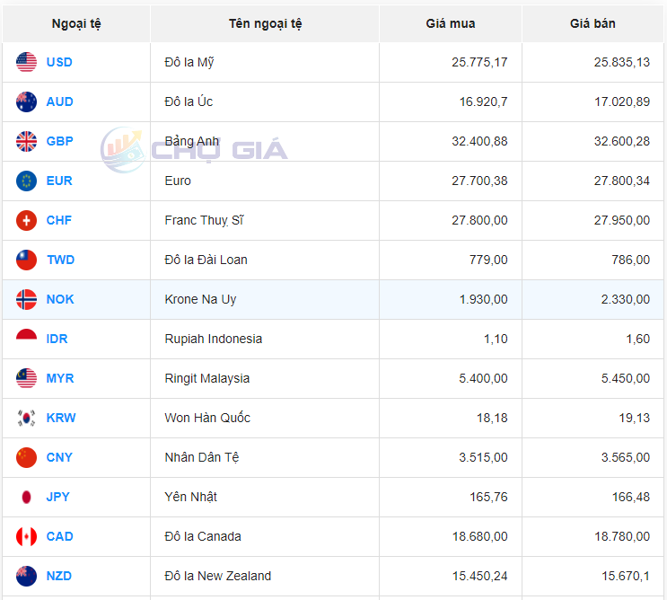 Trong khi đó, chiều bán ra có 0 ngân hàng tăng giá bán ra, 0 ngân hàng giảm giá bán và 5 ngân hàng giữ nguyên giá bán so với hôm qua.