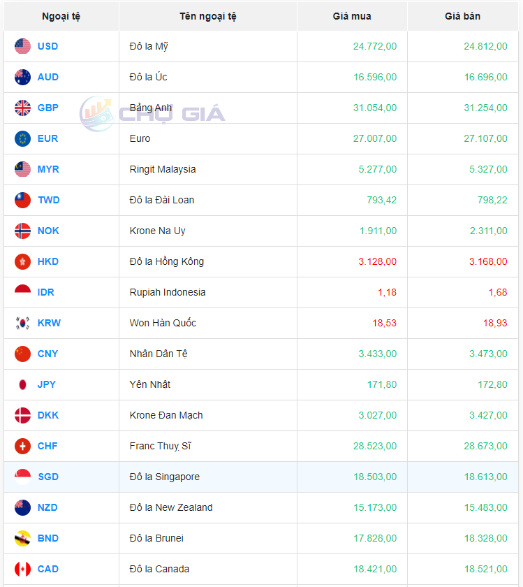 Với 8 ngoại tệ còn lại, khách hàng có thể giao dịch bằng hình thức chuyển khoản: Krone Đan Mạch (DKK), rupee Ấn Độ (INR), Dinar Kuwaiti (KWD), ringgit Malaysia (MYR), Krone Na Uy (NOK), Rúp Nga (RUB), Rian Ả-Rập-Xê-Út (SAR) và Krona Thụy Điển (SEK).
