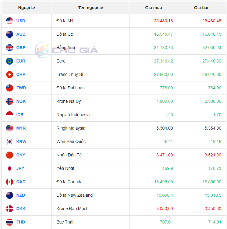 Ngân hàng Ngoại thương mua Nhân dân tệ (CNY) giá cao nhất là 3.378,45 VNĐ/CNY. Bán Nhân dân tệ (CNY) thấp nhất là Ngân hàng Techcombank với giá bán ra 3.489,00 VNĐ/CNY.