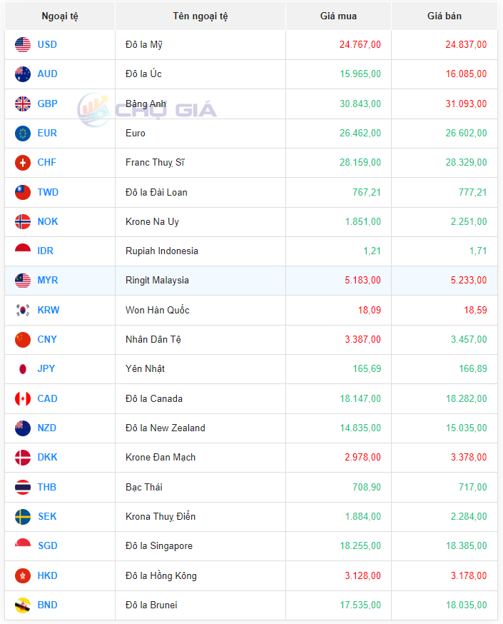 Với 8 ngoại tệ còn lại, khách hàng có thể giao dịch bằng hình thức chuyển khoản: Krone Đan Mạch (DKK), rupee Ấn Độ (INR), Dinar Kuwaiti (KWD), ringgit Malaysia (MYR), Krone Na Uy (NOK), Rúp Nga (RUB), Rian Ả-Rập-Xê-Út (SAR) và Krona Thụy Điển (SEK).