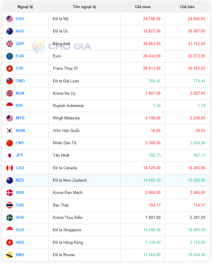 Với 8 ngoại tệ còn lại, khách hàng có thể giao dịch bằng hình thức chuyển khoản: Krone Đan Mạch (DKK), rupee Ấn Độ (INR), Dinar Kuwaiti (KWD), ringgit Malaysia (MYR), Krone Na Uy (NOK), Rúp Nga (RUB), Rian Ả-Rập-Xê-Út (SAR) và Krona Thụy Điển (SEK).