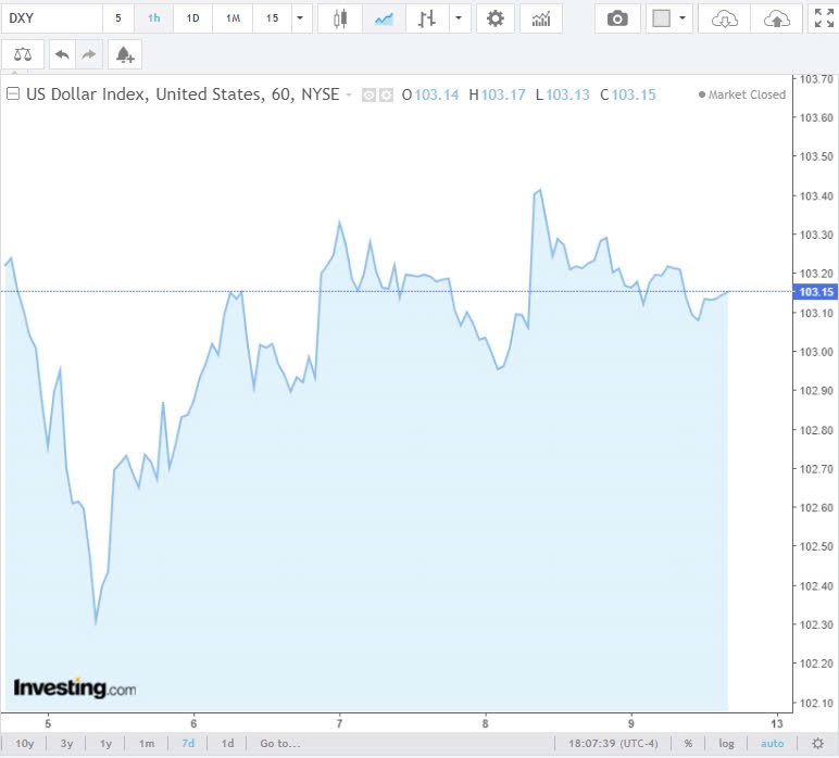 | Diễn biến tỷ giá USD (DXY) những ngày vừa qua (Nguồn: Investing) |