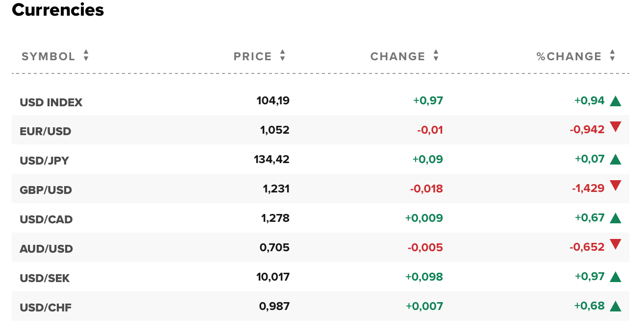 Đồng USD tăng 2,04 điểm so với cuối tuần và lên mức cao nhất 4 tuần qua sau khi chỉ số giá tiêu dùng (CPI) của Mỹ tiếp tục tăng cao. Lợi suất trái phiếu Chính phủ Mỹ kỳ hạn 2 năm cũng đã vượt mức 3% vào ngày 10/6 và chạm mức cao nhất kể từ năm 2008.