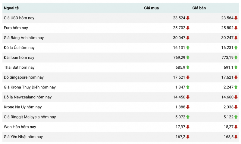 Tỷ giá ngoại tệ thị trường thế giới