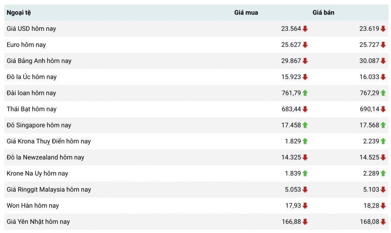 Tỷ giá ngoại tệ thị trường thế giới