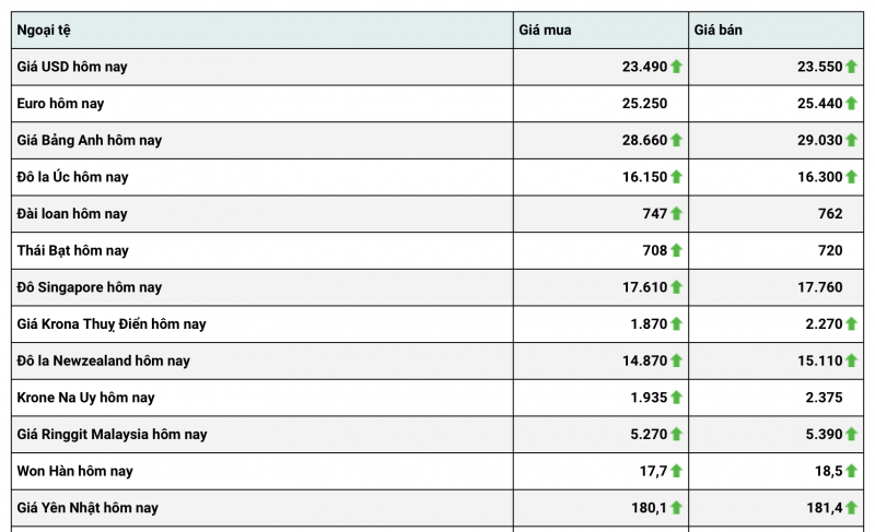 Tỷ giá tham khảo bên ngoài thị trường tính đến ngày 23/1 như sau: