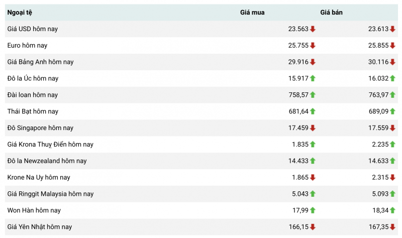 | Chú thích: Tỷ giá ngoại tệ thị trường ngày 23/6 |