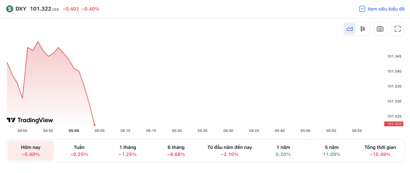 Trong giao dịch chiều, chỉ số đô la Mỹ giảm 0,3% xuống 101,34 sau khi trước đó giảm xuống mức thấp nhất trong 10 ngày.
