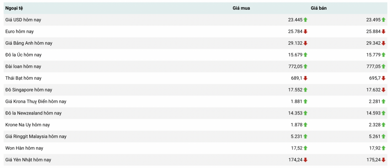 | Chú thích: Tỷ giá ngoại tệ thị trường ngày 25/4 |