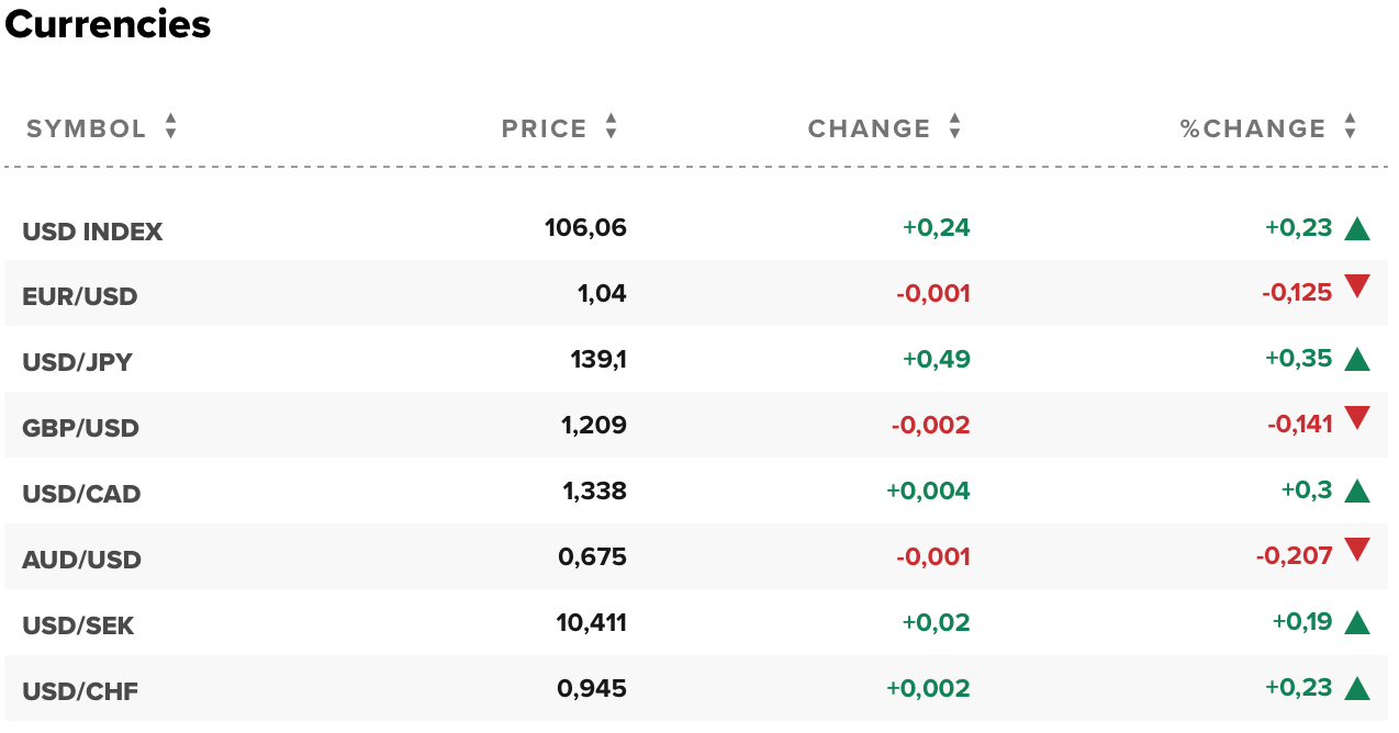 Hiện 1 euro đổi 1,04 USD. 1 bảng Anh đổi 1,209 USD. 1 USD đổi 139,1 yên. 1 USD đổi 1,338 đô la Canada. 1 đô la Úc đổi 0,675 USD, 1 USD đổi 0,945 France Thụy Sĩ.
