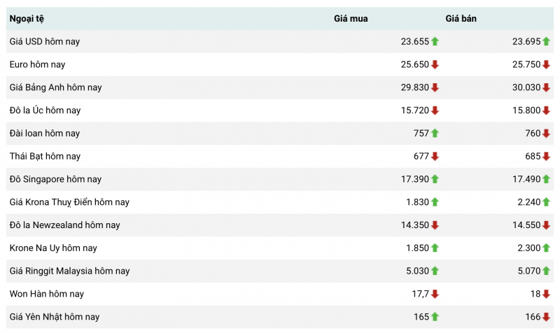 | Tỷ giá ngoại tệ thị trường ngày 2/7/2023 |