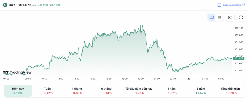 Chỉ số đô la Mỹ, một thước đo giá trị của đồng đô la xanh so với sáu đồng tiền chính, đã tăng 0,2% lên mức 101,65.