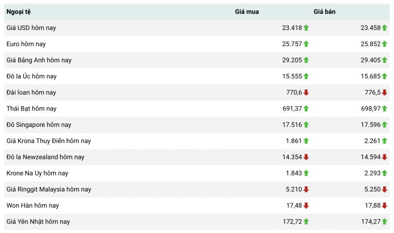 Ngân hàng nhà nước Việt Nam công bố tỷ giá trung tâm với đồng Đô la Mỹ giữ nguyên, hiện ở mức 23.639 đồng.