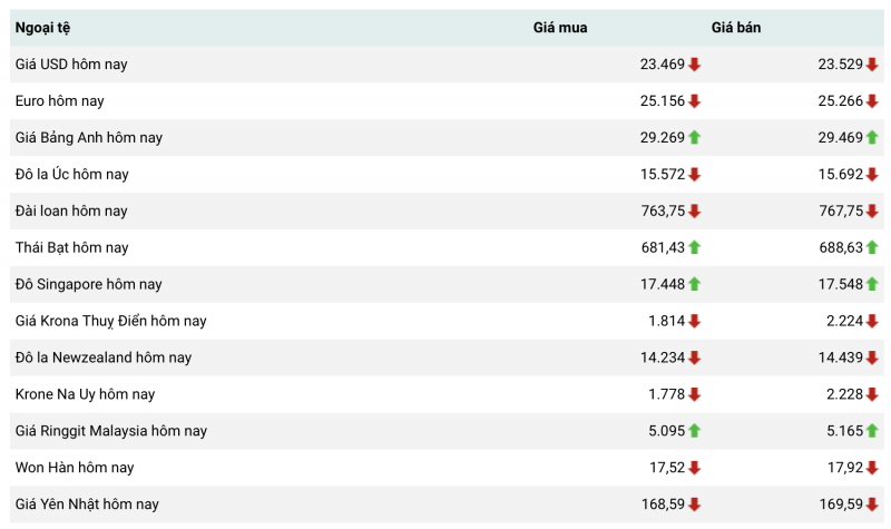 Tỷ giá ngoại tệ thị trường thế giới